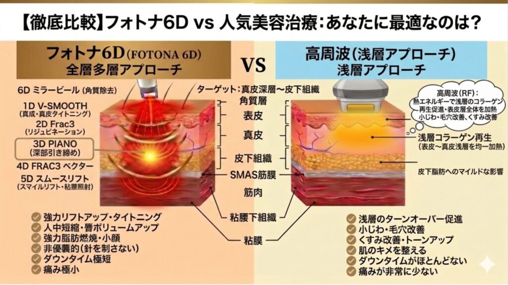 フォトナ6D vs 高周波(RF):多層ケアとカスタマイズ