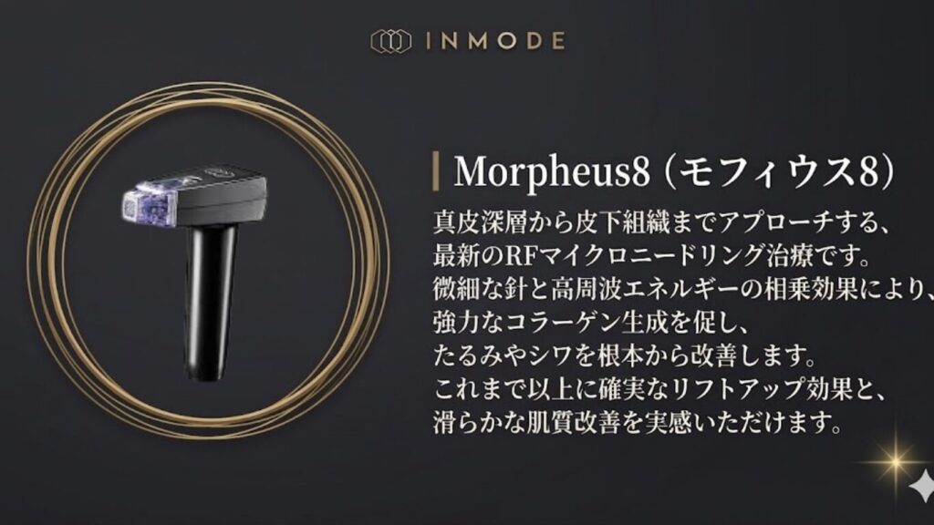 従来のRF機器が肌の表面から熱を加えるのに対し、モルフェウス8は微細な絶縁針を介して、狙った深さに直接熱エネルギーを届けます。