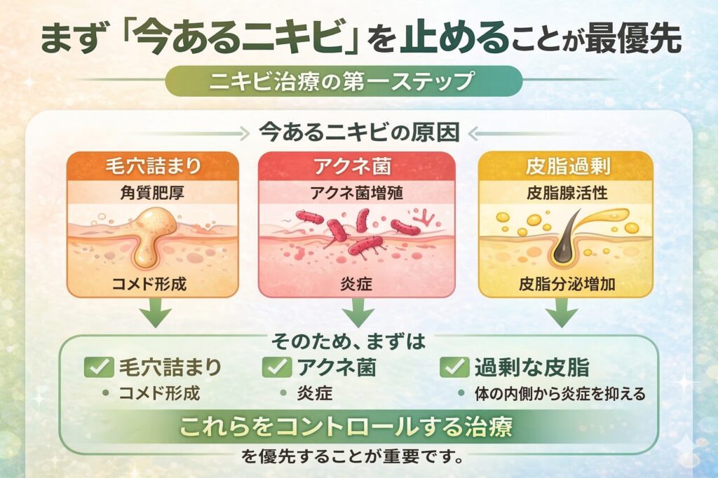1. まず「今あるニキビ」を止めることが最優先