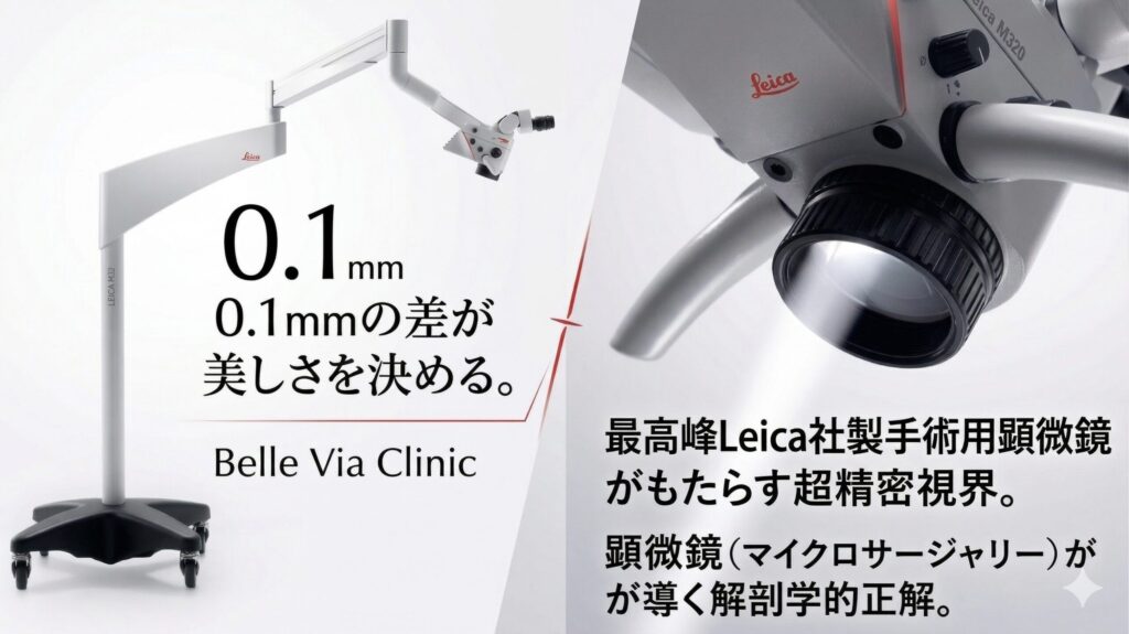 Belle Via Clinicが誇る「マイクロサージャリー」の真髄 当院で行っているのは、単なる「手術」ではなく、顕微鏡を駆使した「マイクロサージャリー(微細外科)」です。